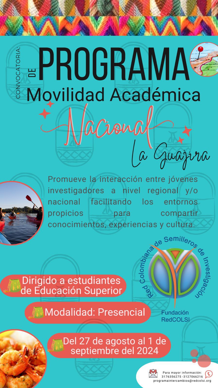 En aras de seguir creando escenarios de reflexión para que los jóvenes investigadores, socialicen sus propuestas, avances y resultados de procesos investigativos, que buscan dar solución a problemas identificados desde la generación de nuevos conocimientos y propuestas innovadoras, y fortalecer la formación en investigación y la producción de conocimiento, se hace necesaria la realización del VII Encuentro Departamental de Semilleros de Investigación – EDESI- Nodo Guajira “Investigación formativa en La Guajira: escenario de emoción, colaboración, innovación y aprendizajes", este espacio dinámico permitirá el intercambio de aprendizajes, la discusión de la investigación, la evaluación del trabajo desarrollado, la conformación de redes y comunidades científicas que apunten al desarrollo de la región.Valor: PONENTES Y ASISTENTES Estudiantes de Pregrado y particulares $85.000 m/l SENA/ESANA/NAVAL $75.000 m/l Estudiantes de Básica y media (colegios) $55.000 m/l